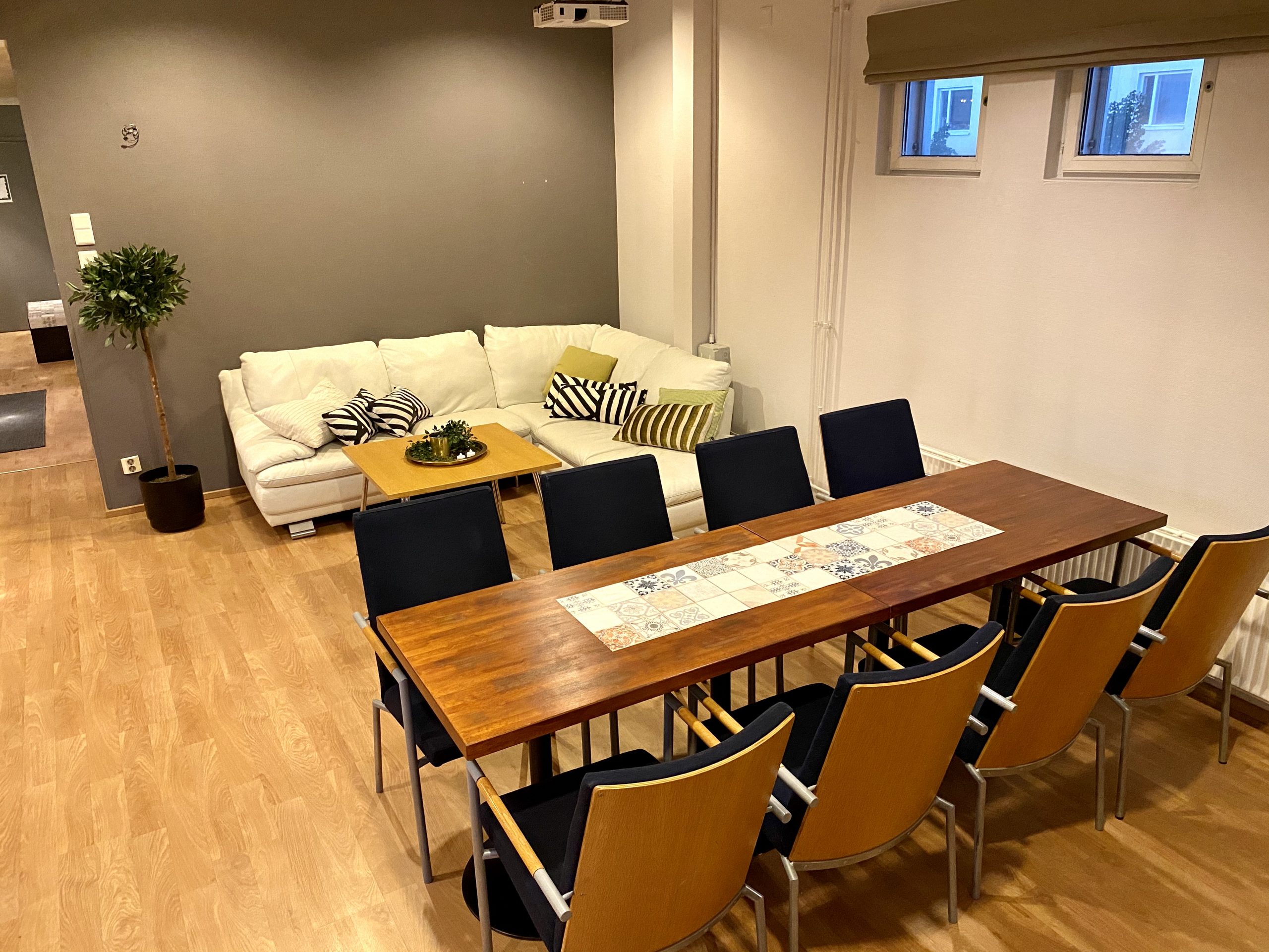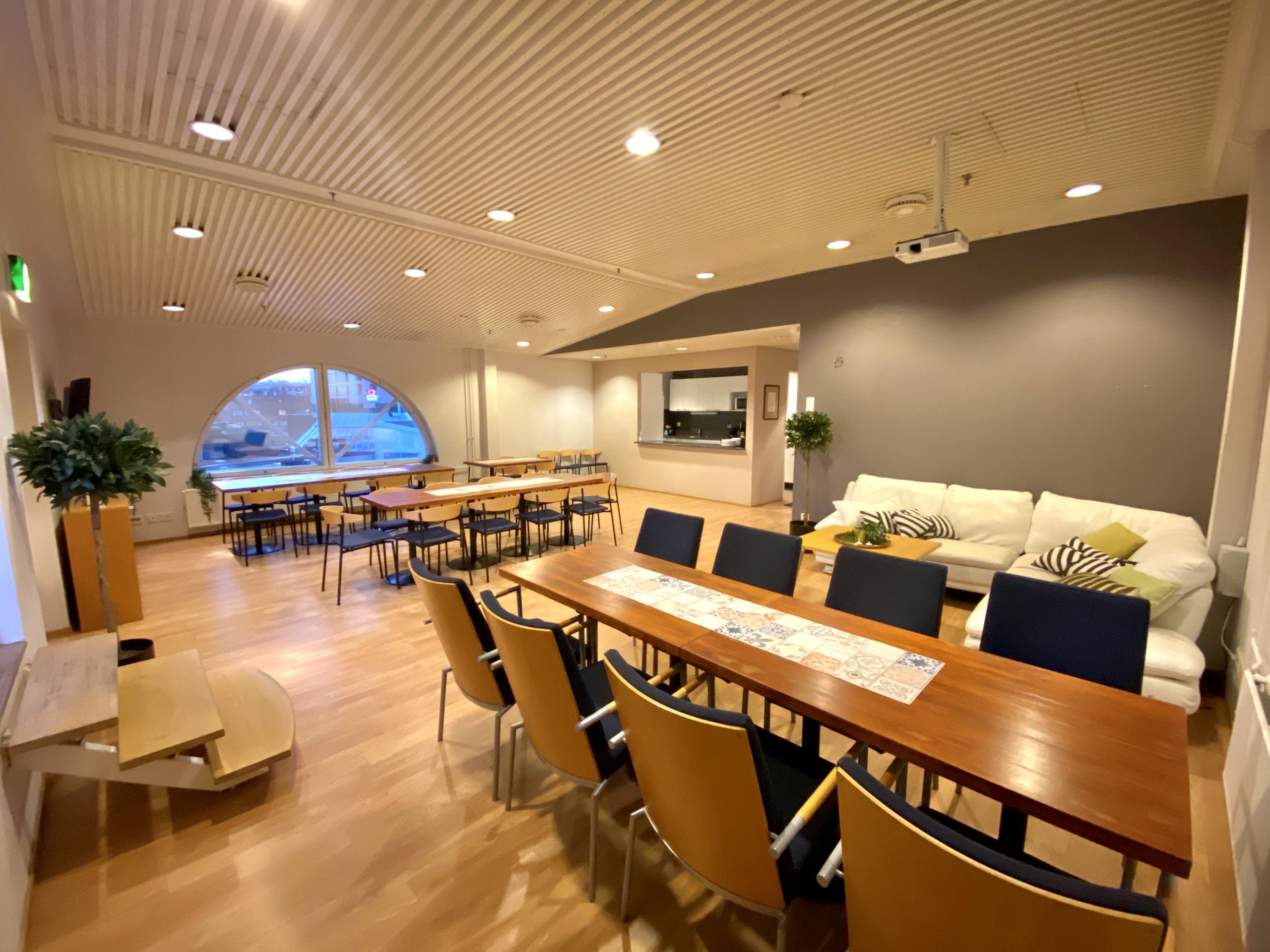 Oleskelutila on 40 henkilölle, joista pöytien ääreen mahtuu yhtä aikaa 30-35 hlö. Oleskelutilassa tunnelmaa herättää suuri kaari-ikkuna koskikeskukselle. Vilvoitteluterassi avautuu Hatanpään valtatien suuntaan. Tiloista löytyy myös baarikeittiö kylmiöineen sekä mikro ja kahvinkeitin. Tilasta löytyy videotykki ja valkokangas sekä erillinen TV. Äänentoistosta huolehtivat seinälle kiinnitetyt aktiivikaiuttimet sekä erillinen bluetooth-kaiutin.