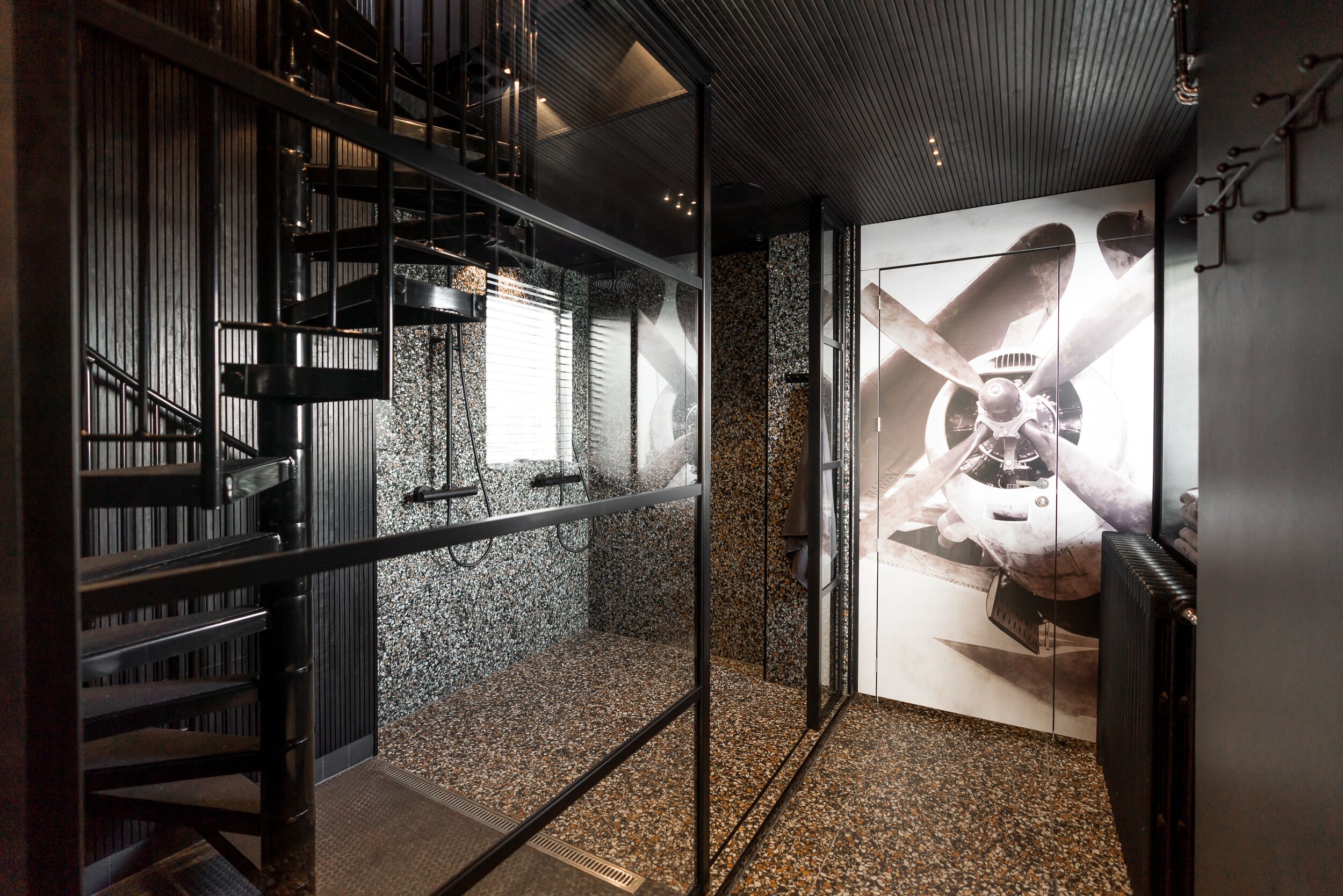 Saunatila sijaitsee Herbert Holmbergin piirtämässä rakennuksessa, joka valmistui vuonna 1936. Nykyään Museoviraston suojelema kiinteistö toimi aikanaan Suomen Puolustusvoimien lentokonevarikkona. Rakennus toimi Valmet OY:n lentokonevarikkona aina vuoteen 1982.